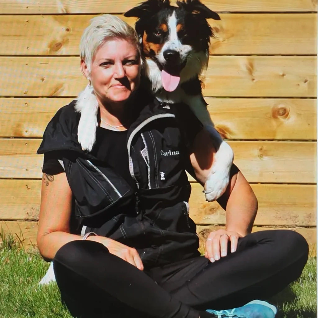 Idag har Carina två Border Collies: Lovemix Vässa som är en glad pensionär på 11 år som startat två SM i Sök och kört både Rally, Tävlingslydnad och Vallning.